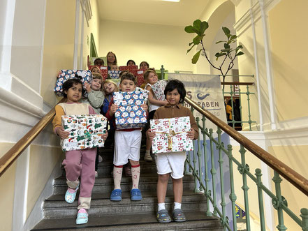 Die 1b konnte Dank der Kinder und deren Eltern 19 Geschenke für das Projekt „Christkind in der Schuhschachtel“ für die Kinder in der Ukraine und Rumänien zusammenstellen. Vielen Dank für die Unterstützung!