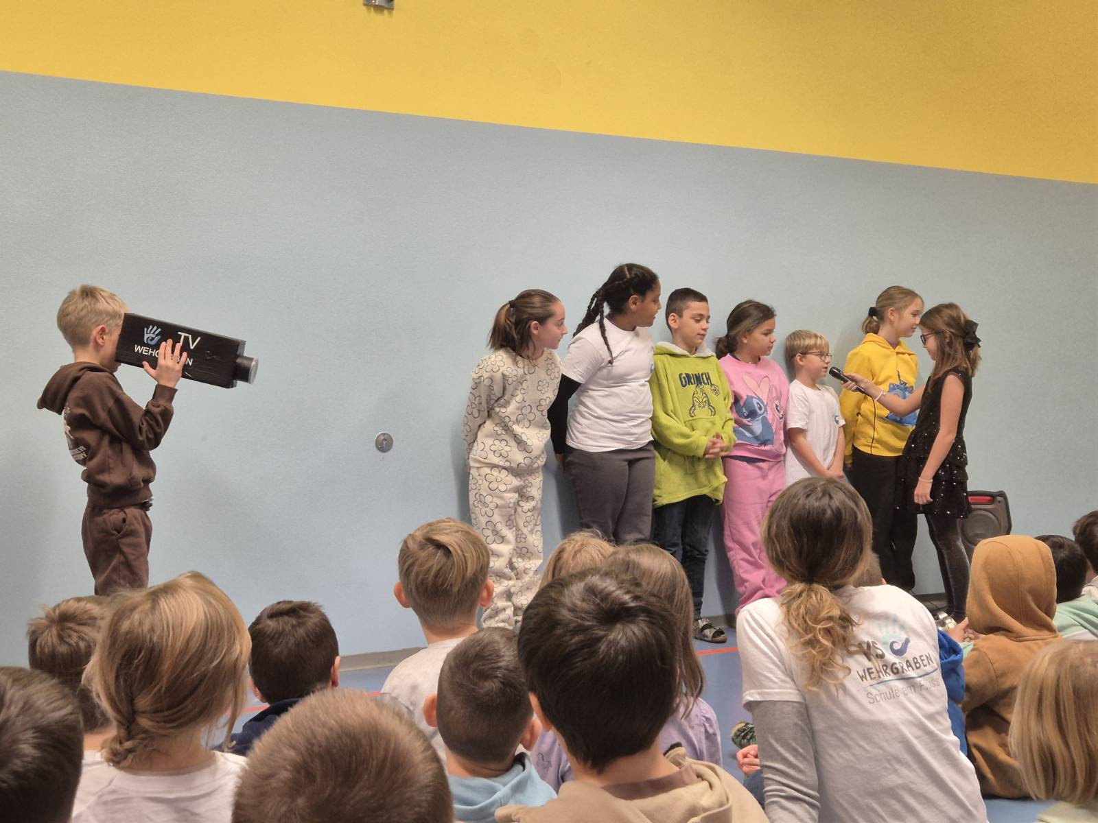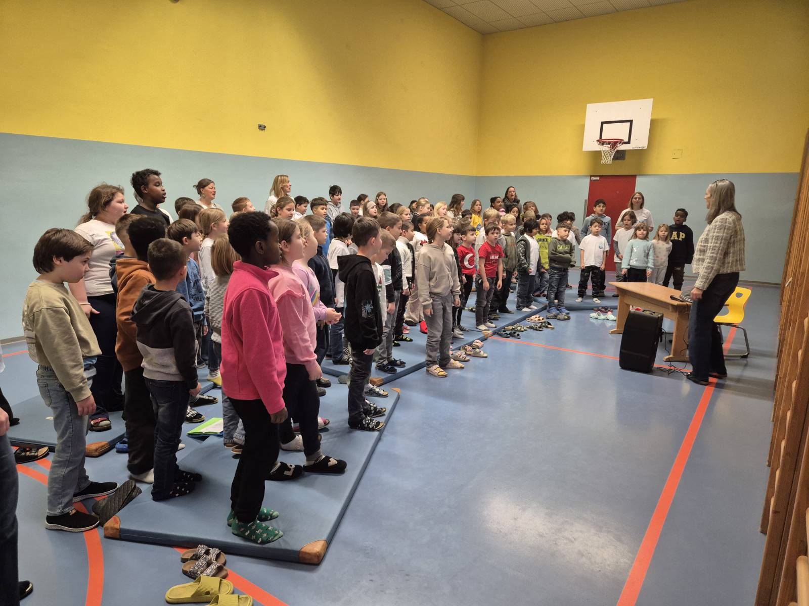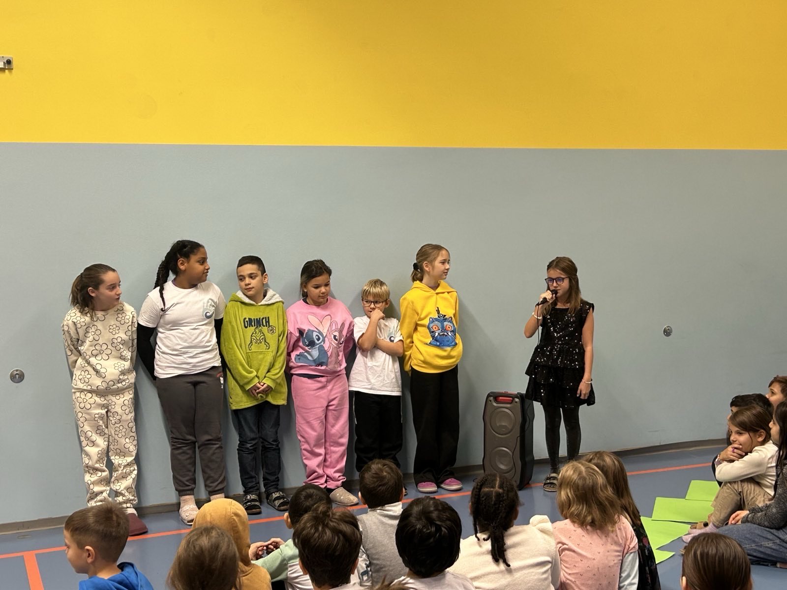 Im Schulkreis war richtig was los! Die Klasse 3a hat ihr fröhliches „Gute-Laune-Lied“ gesungen – da wollten alle gleich mitsingen und mittanzen! 🎶